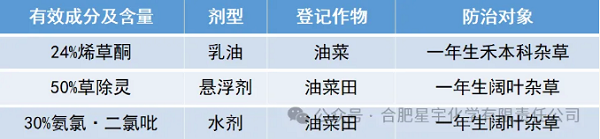 注意事項: 1.每季作物最多使用1次,抽薹后禁止使用。 2.推薦用于甘藍型油菜,不推薦在白菜型油菜田及芥菜型油菜田使用。 3.兌藥要二次稀釋,不要重噴和漏噴,噴霧應均勻透徹。 4.施藥時間應選擇在無風或微風的晴天,且日平均氣溫高于5攝氏度。 5.施藥時應注意避免藥液飄移,造成藥害。 6.推薦年前雜草較小時使用,不推薦年后使用。 7.后茬種植大豆、花生等作物需間隔一年,種植棉花、向日葵、西瓜、番茄、紅豆、綠豆、甘薯需間隔18個月;后茬種煙草不推薦使用或種植。